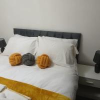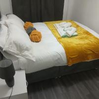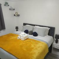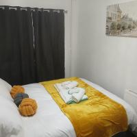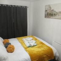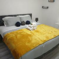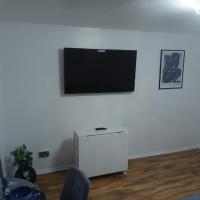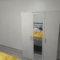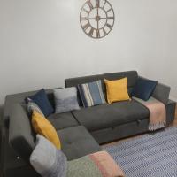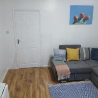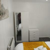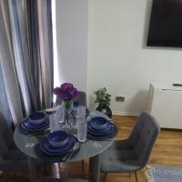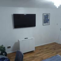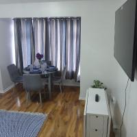Preferred Comfort Home, Thornton Heath, London, offers a two-bedroom apartment in London. The property features a living room with a sofa bed, parquet floors, and a dining area.